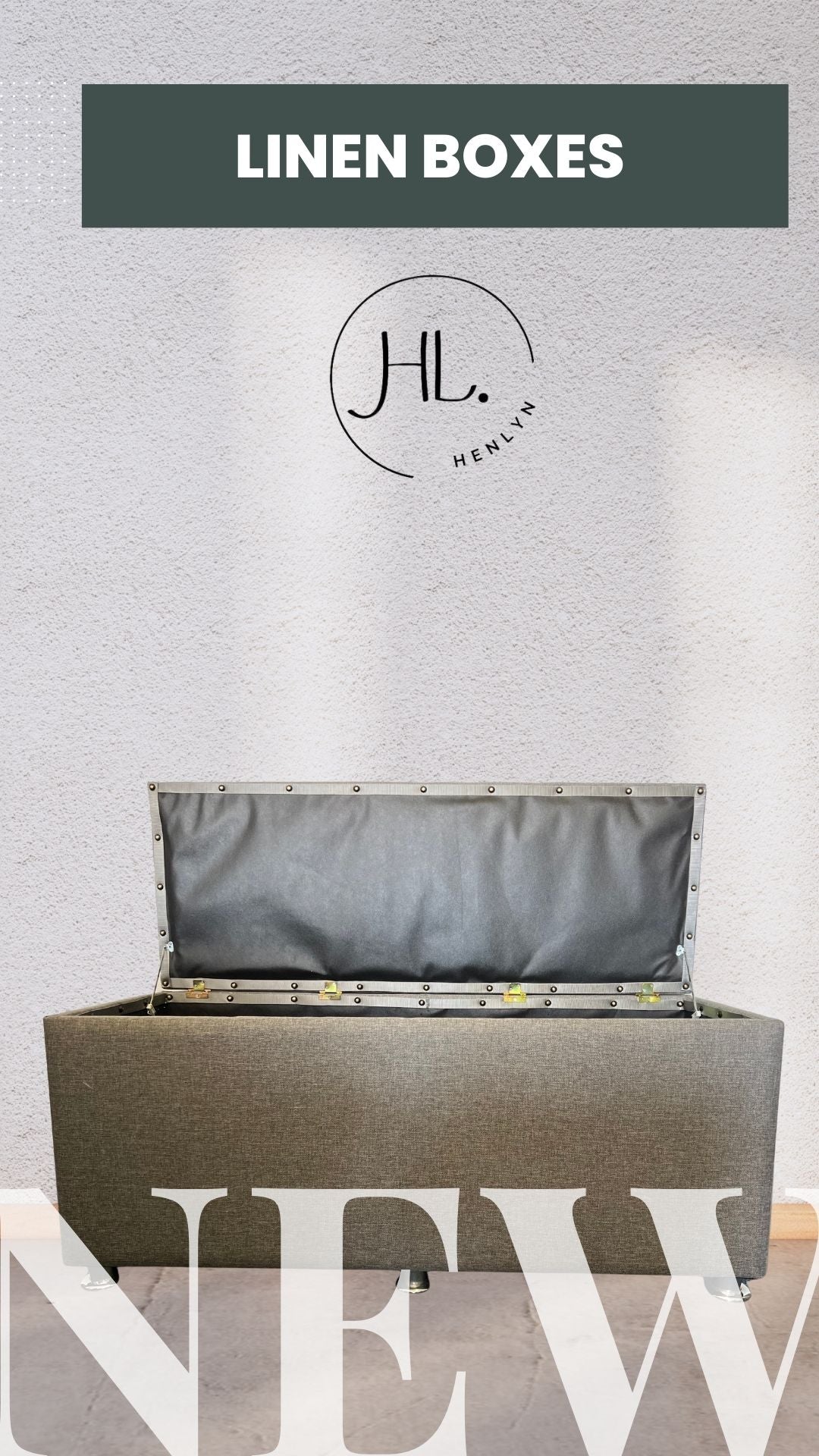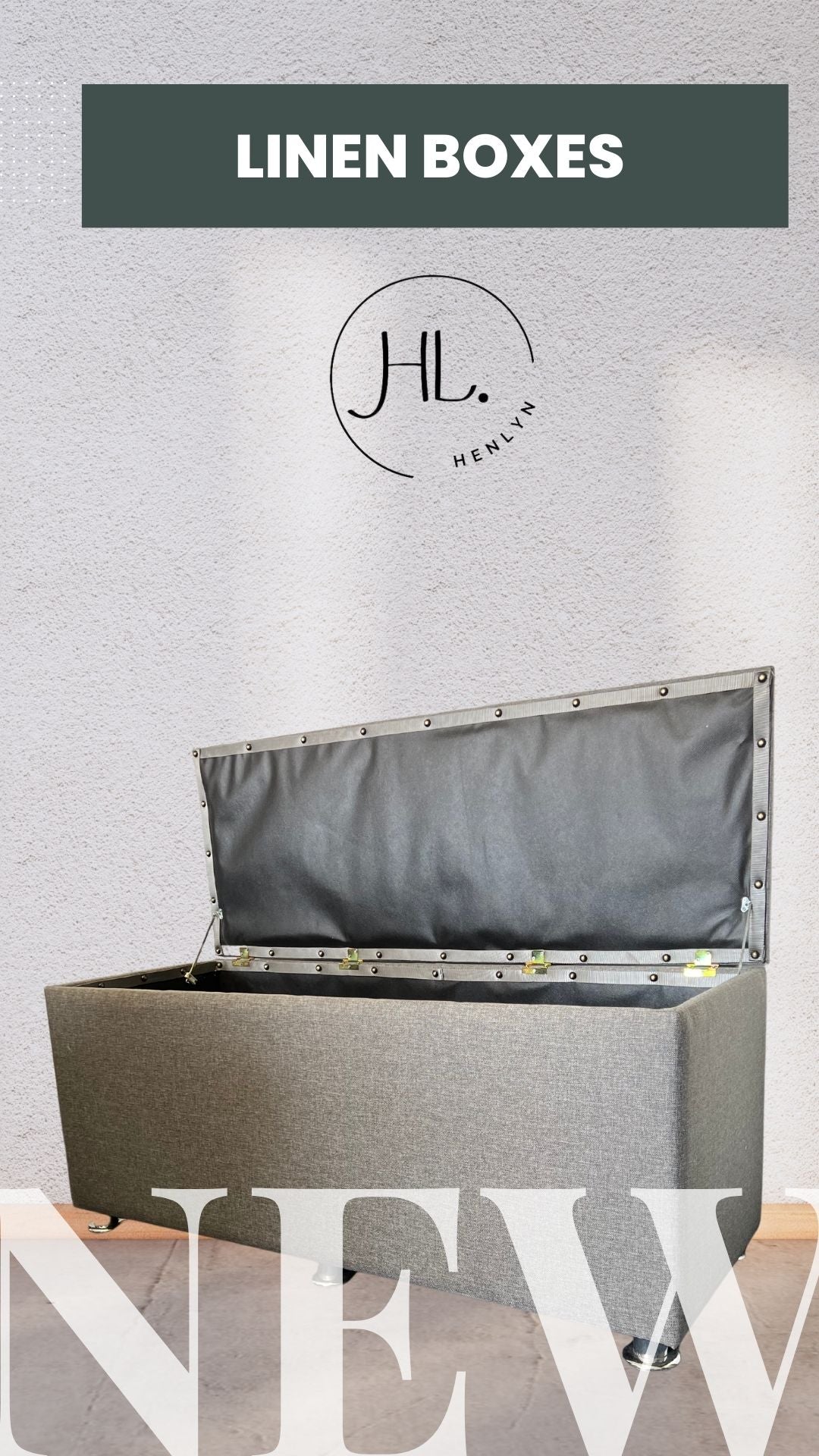 A timeless classic large linen box that doubles as a seat, the epitome of understated elegance, gracing the foot of your bed. Its clean lines and neutral hues seamlessly blend with any decor style, effortlessly elevating your bedroom's aesthetic and serving as a functional storage solution.